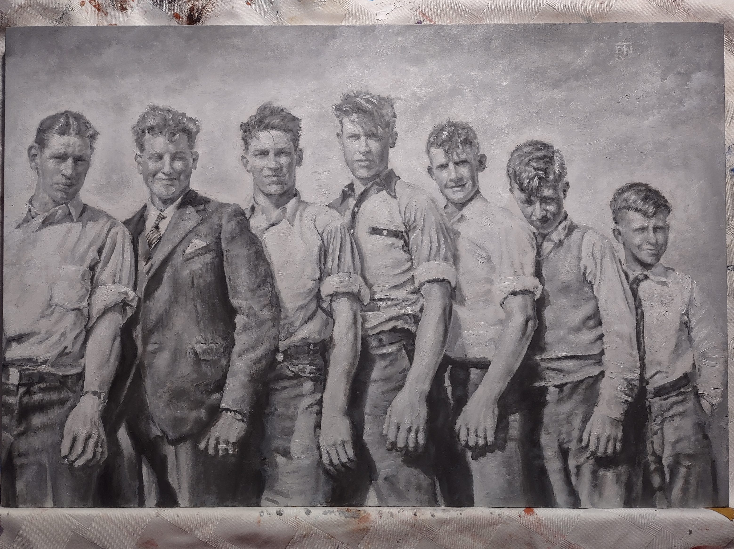 Here’s an update on the portrait of my grandfather and his brothers. I’m starting to get back to working on these little black and white paintings.