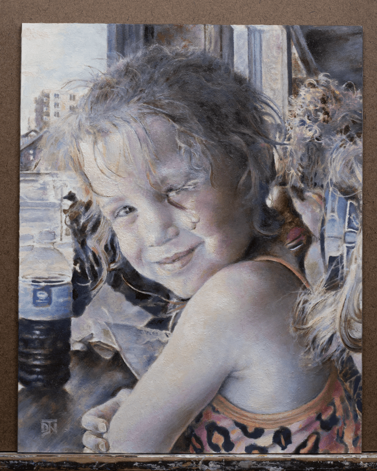 It’s been quite a while since I took this photo of my grand-niece. We, my sister and her children/grandchildren, were on a vacation in Florida and I was irritating all of them with my constant “hold still now” moments. I liked this one and decided it needed to be painted. Makes me think of boogie-boards and salt breezes.
